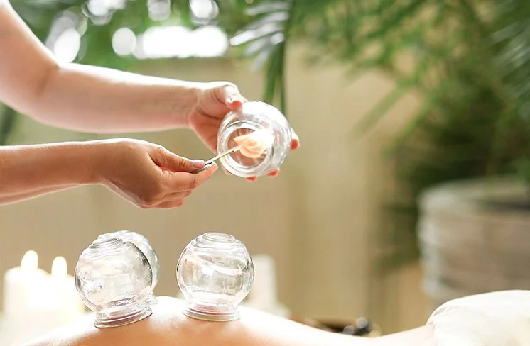 Here cups to create a vacuum on the skin. This helps stimulate the blood flow and the flow of energy.